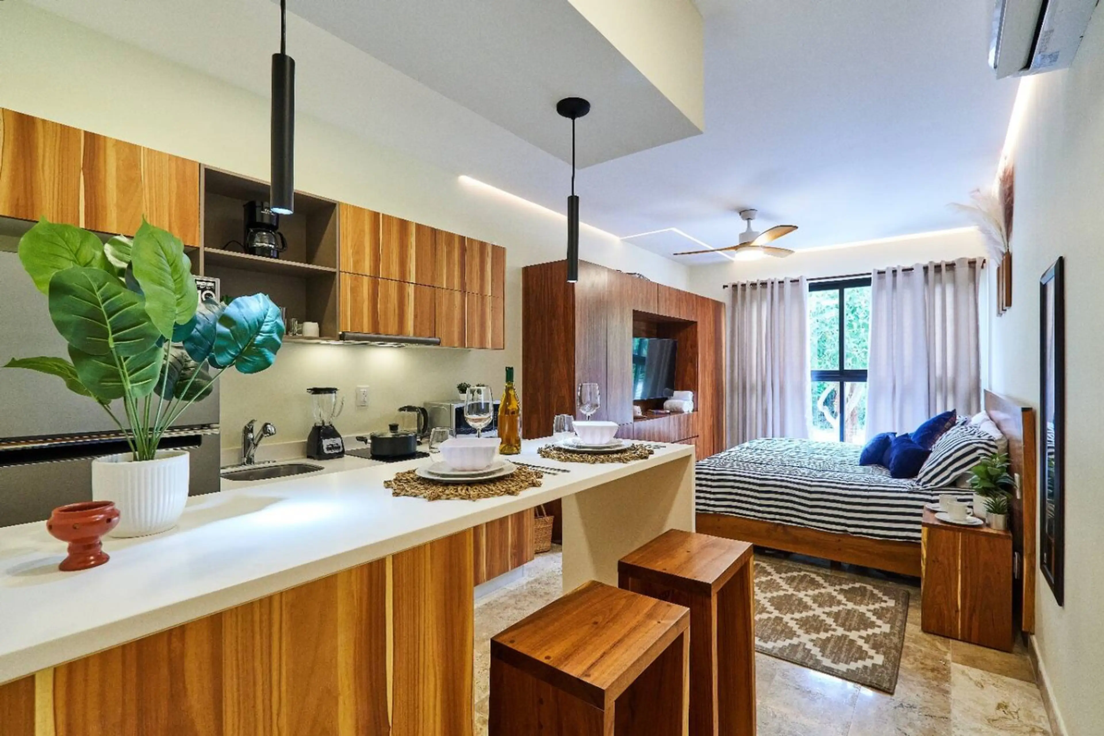 Experience the best of Tulum at our centrally located Aldea Zama jungle studio! Surrounded by vibrant foliage, our tranquil retreat is within walking distance of top restaurants, shops, and convenience stores. Explore ancient ruins, stunning beaches, and vibrant nightlife, all just minutes away." -...